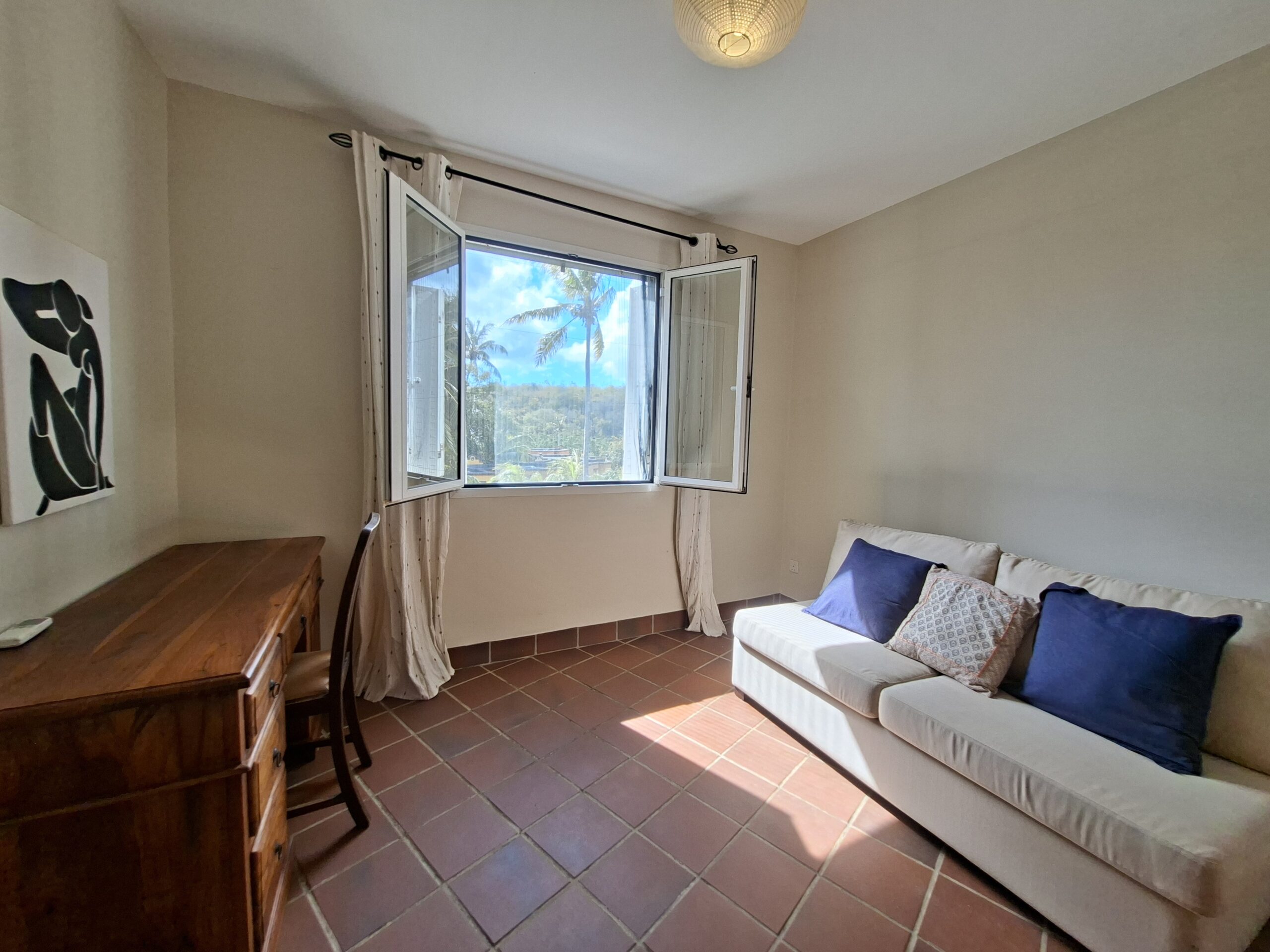 Superbe duplex de 2 chambres entièrement meublé situé dans une résidence sécurisée à Baie du Tombeau. Les deux chambres disposent d’une salle de bain attenante pour plus d’intimité. La propriété comprend une cuisine entièrement équipée, un salon spacieux et lumineux et une terrasse avec vue sur la rivière environnante. Une piscine, un spa, un restaurant, une salle de sport et un service de sécurité 24h/24 et 7j/7 sont à votre disposition.