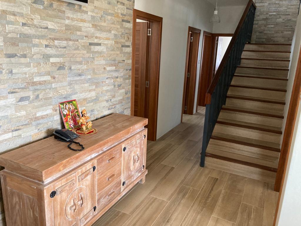 Cette maison de 4200 pieds carrés sur 215 toises de terrain est située dans un morcellement sécurisé à Ebène à juste quelques minutes de toutes les routes principales et grand supermarchés. Elle consiste en une cuisine américaine + cuisine grasse, garde-manger, buanderie, salon et salle à manger, 5 chambres à coucher, un bureau, 2 salles de bains, 2 toilettes et salle de TV. Garage avec porte automatisée. CCTV et alarme. Jardin et terrasses à l’avant et à l’arrière de la maison. Idéal pour une famille !